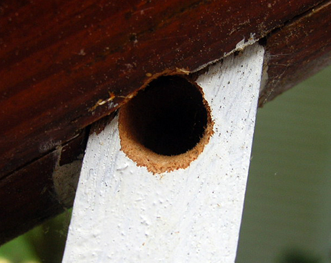 Most of the time, real damage to wood is minimal. However, over time, repeated drilling of new galleries can become significant. Additionally, there is always the chance of damage by woodpeckers as they dig out bee larvae from the galleries.